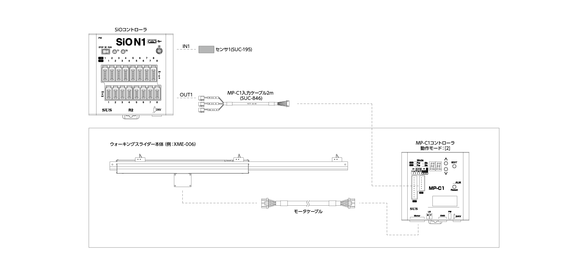 センサがONすると、ウォーキングスライダーが1往復動作します。